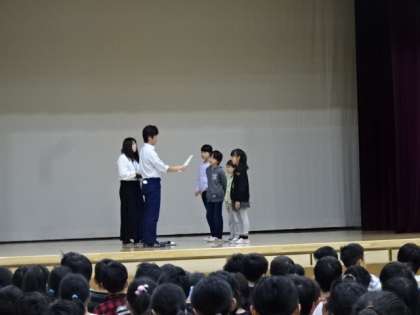 今朝は、副校長先生が校長先生のみんなに読んでほしいオススメの本の紹介しました。