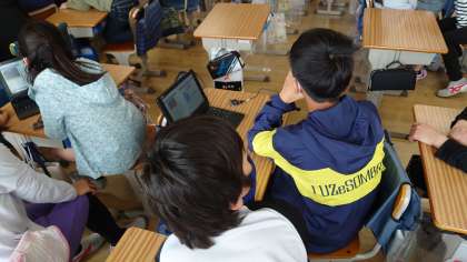 5年生がプログラミングの学習でマイクロビットに挑戦です。