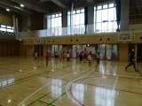 外はあいにくの雨模様ですが、アリーナで体育をしていました。 先生の合図で体を...