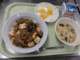 〇牛乳 〇マーボーなすどん 〇かきたまスープ 〇フルーツ牛乳寒天 Ϭ...