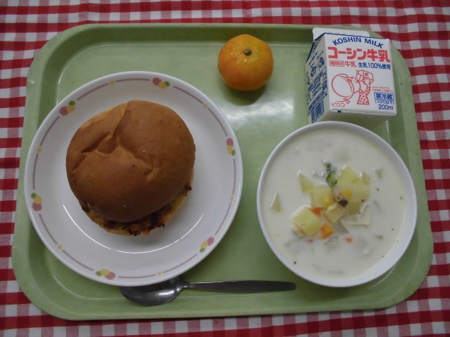 今日の給食は、国際理解給食です。アメリカの料理を出しました。