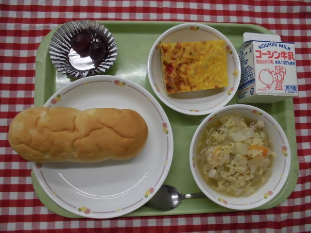 今日から、二学期が始まりましたね。給食もスタートしました。二学期はじめの給食は、パインパンと、