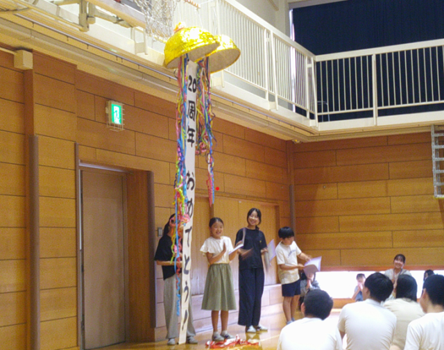 9月25日(木)に、全校で20周年記念集会を行いました。それぞれの学年でお祝いの出し物をしました。