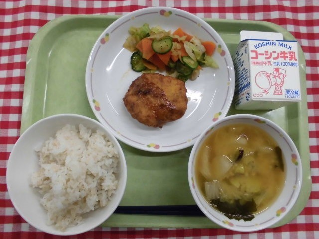 さつまいもとわかめのみそ汁 牛乳