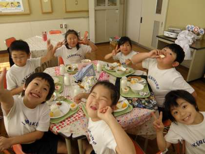 ランチルームを出る時は、お腹をパンパンにさせて教室に戻っていきました☆