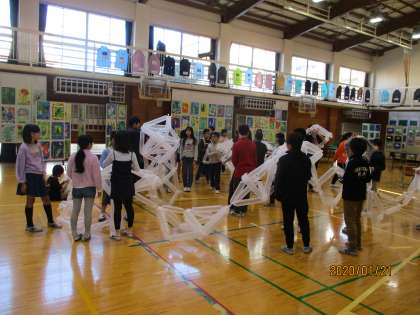 21日には4年生と5年生の共同作品を作りました。夢中になって作っていました。