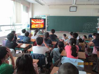 今年は「一年生を向かえる会」ができないけれど、1年生を紹介したいので動画をつくりました。1年生がこっそり体育館で練習をして、動画を撮りました。かわいい1年生の姿をみて、各教室で拍手がおこっていました。