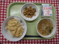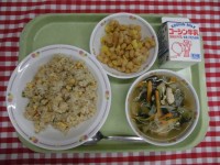 たまごチャーハン チンゲンサイスープ カレービーンズ 牛乳 今日の給食ひとくちメ...