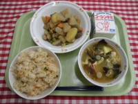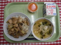 中華風炊き込みごはん 春雨サラダ ユーミータン(玉米湯) 牛乳 今日の給食ひとく...