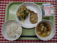 ごはん 魚のにんにくみそ焼き 野菜のアーモンドソース もずく汁 牛乳 今日の給食...