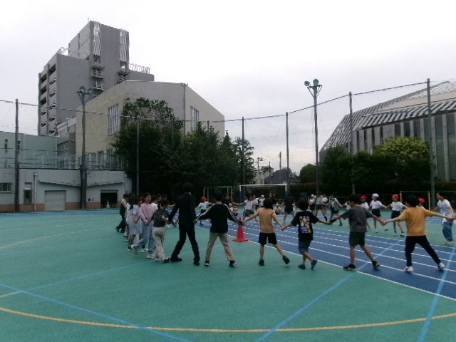 もうすぐ富士五湖移動教室を控えている5年生は、キャンプファイヤーで行う「マイムマイム」に取り組みました。