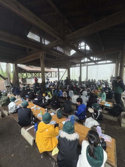 最初の活動は飯盒炊飯です。説明を聞いています。