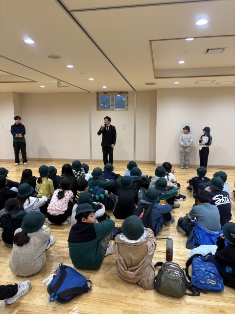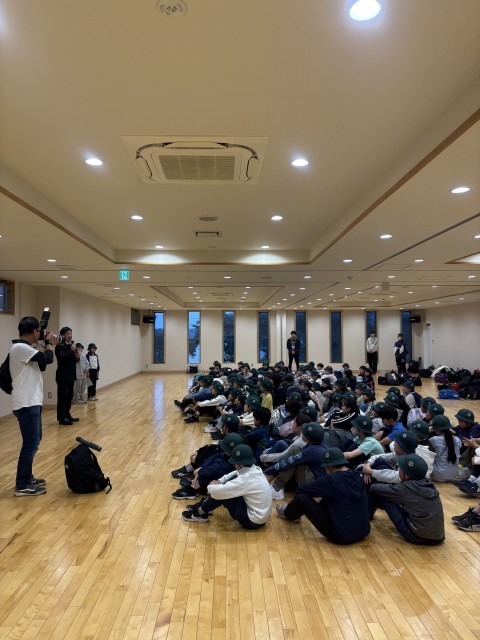 到着が遅れましたが足和田ホテルでの開校式です。立派な態度です。