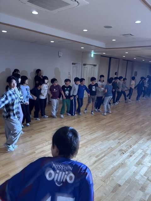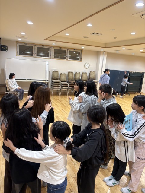 キャンプファイヤーで行う予定だったレクを室内で楽しみました。良い思い出です!