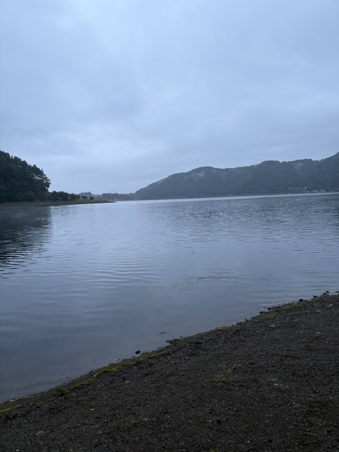 おはようございます。朝6時の時点では小雨の河口湖です。移動教室2日目のスタートです。