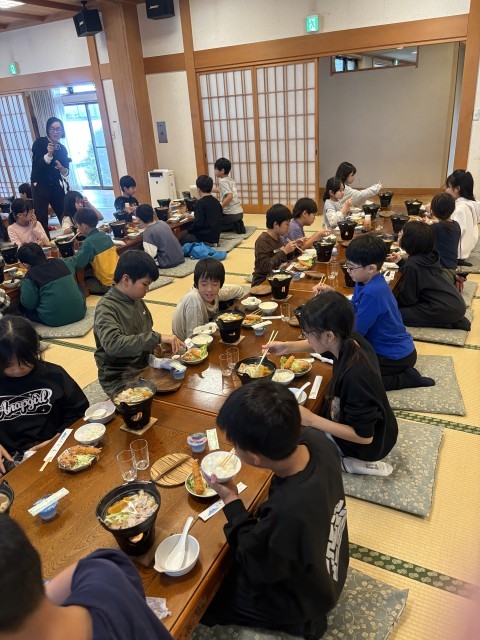 移動教室最後のご飯は山梨名物のほうとううどんです!