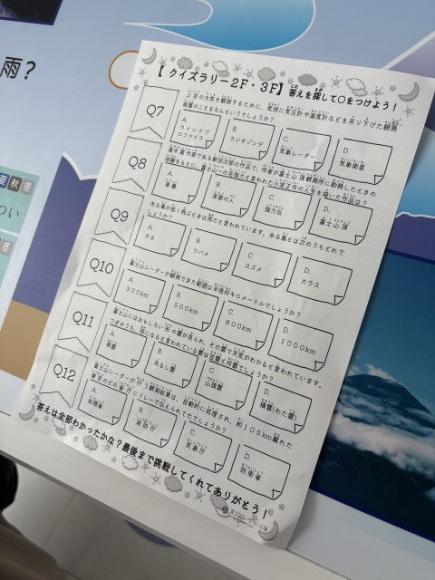 クイズラリーカードをもとに、楽しく見学しながら学ぶことができました。富士山頂の気候も体験できました!