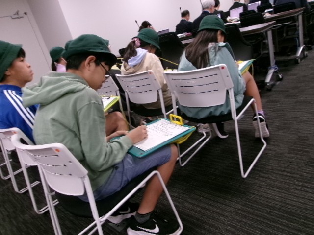 今日の議会は、議場ではなく、議員協議会室という場所で行われていました、後方の傍聴席で6年生はしっかりメモを取りながら生の議会を見て、聞いて、感じることができました。