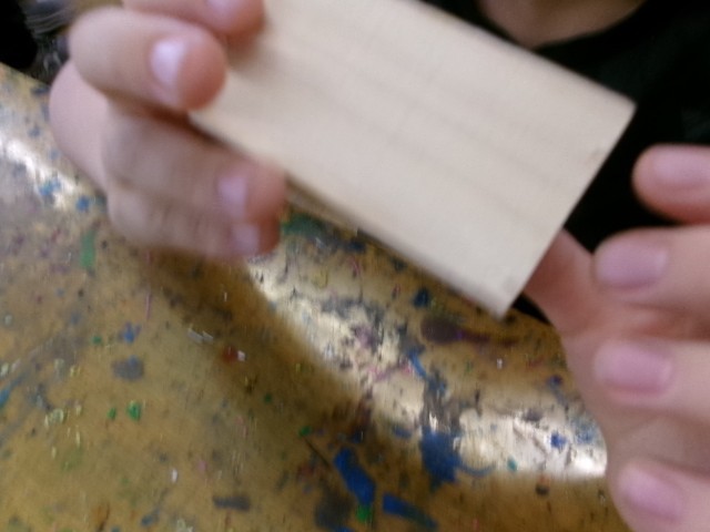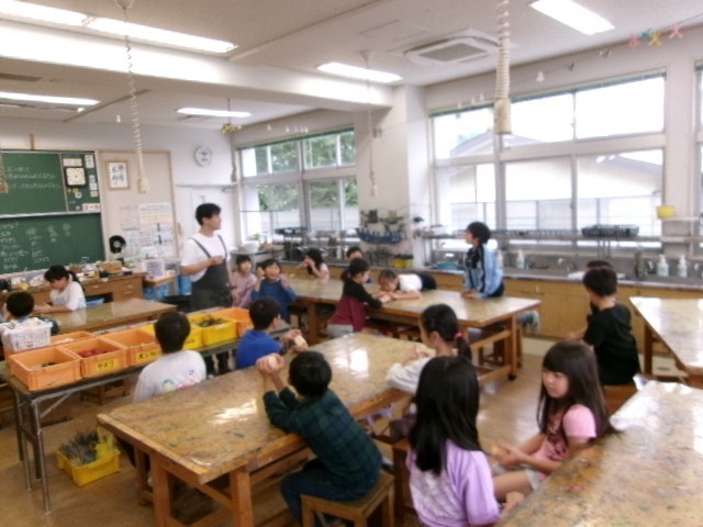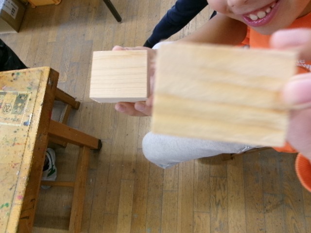 「木ってすてき」という題材の図工の学習が始まるにあたり、気を直接さわって、見て、木の感じを子供たちの言葉で表していきました・