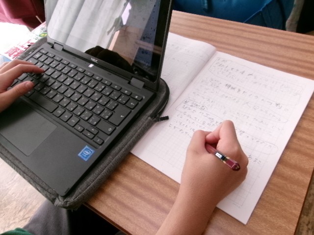 自動車工業について、組み立て工場と関連工場との関連について教科書やタブレットを活用しながら、ノートにまとめていきました。