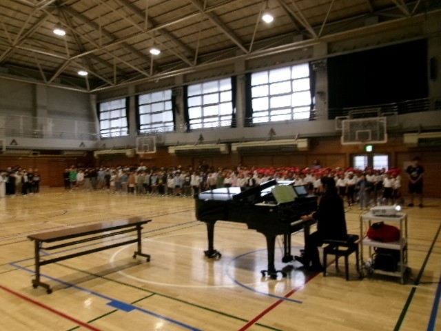 10月の音楽朝会では、「校歌」と「MUSIC」という曲の2曲をみんなで歌いました。朝から気持ちがよくなる素敵な歌声でした。