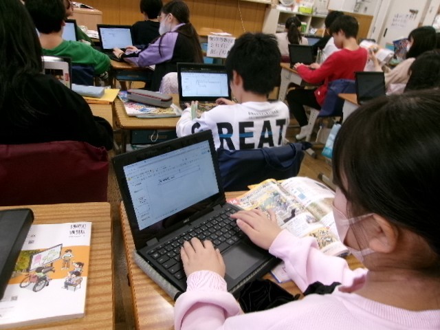 徳川家康の幕府統一後の政治の進め方を課題として、資料から読み取りながらタブレットにまとめていく学習でした。黙々と取り組んでいます。