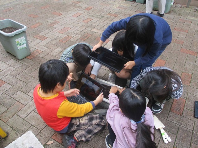 先輩の野菜づくり名人に学びながら野菜のたねをうえました。