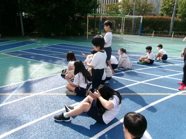 鏡を使って日光の反射を確かめました。最後はみんなで太陽の光を集めてみました。