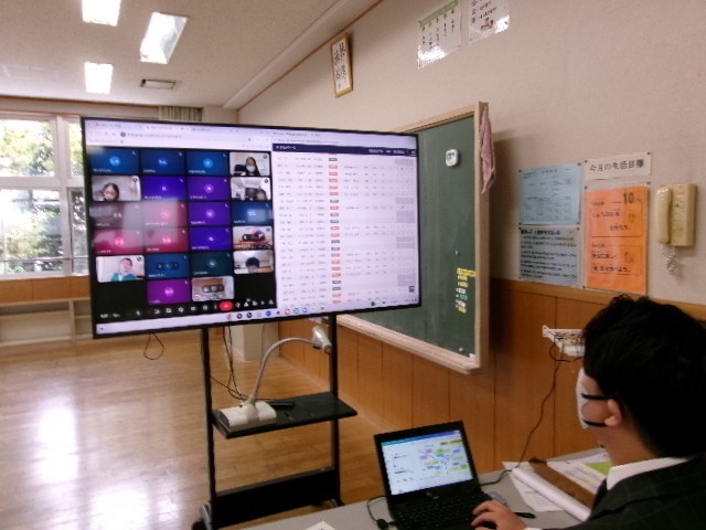 3クラスのうち2クラスが学級閉鎖中の4年生は、1時間目に、学校では教室で運動会練習、オンラインでは算数のドリルパークを進めるという形での取り組みが行われていました。3連休後、全員がそろうことを願うばかりです。