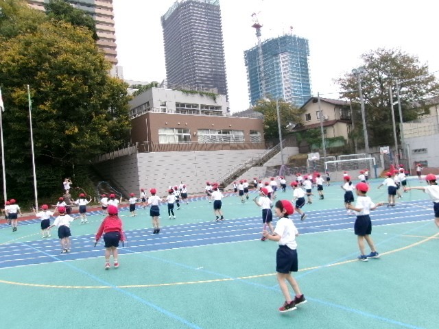 1学級お休みですが、登校している2学級で校庭に出て、場所を確認しながら、ダンスやなわとびの練習に取り組みました。