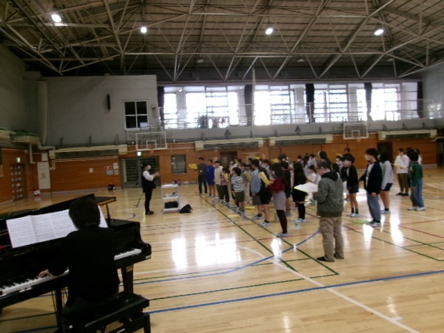 運動会前ですが、15日(土)の音楽のつどいに向けての練習も続いています。たくさんの子供たちと、たくさんの保護者の皆さんが体育館で練習しています。