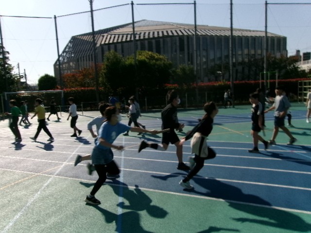全員リレーに向けて、チームごとにバトンパスの練習に取り組みました。明日、全力で走り切ります!
