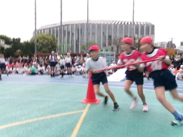 4年生の団体競技は台風の目。力を合わせて頑張りました。