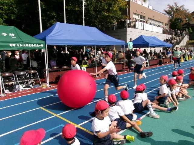 最後の得点種目は全員が参加の大玉ころがし。盛り上がりました。