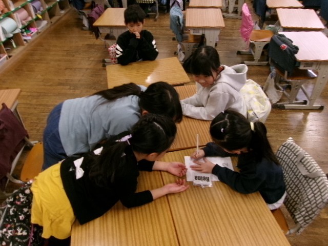 今朝はスマイル班活動でした。縦割りの異学年交流が定着しています。