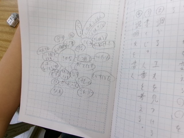 「すがたを変える大豆」の学習を終え、今度は自分が調べたものを伝える学習に入ります。まずは文章構成を確認しました。