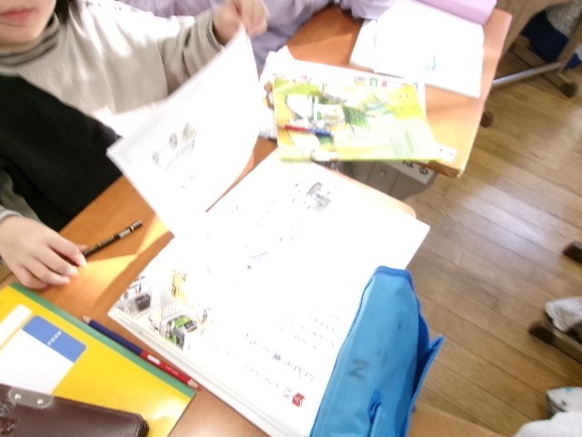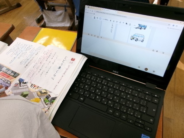 「じどう車くらべ」という説明文の学習をタブレットを活用して進めています。文字入力も手書き入力モードを使い、少しずつ慣れてきています。