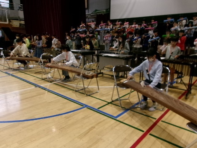 1時間目から音楽会の練習に取り組んでいます。4年生ともなると、いろいろな楽器に挑戦もしています。