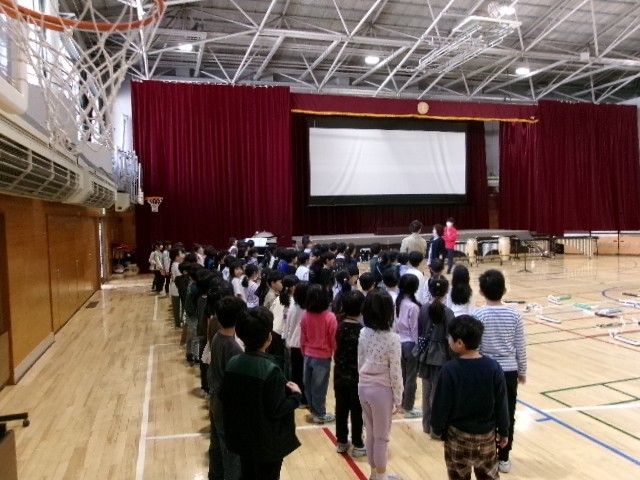 音楽会に向けての練習の中で、移動したり整列したりする活動も、子供たちにとっては大切な学びになります。今日は自分の座席から、整列場所までの移動・整列の練習も行いました。1回目は80秒、2回目は24秒、3回目は15秒と、確実に習得していきます。規律ある行動ができるようになっています。