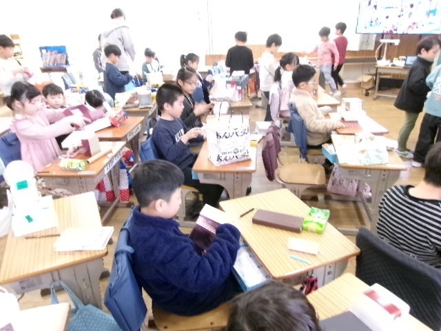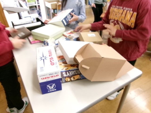箱を使って、その形を利用しながらイメージを膨らませ、箱を組み合わせながらの制作活動です。夢中になって取り組んでいます。