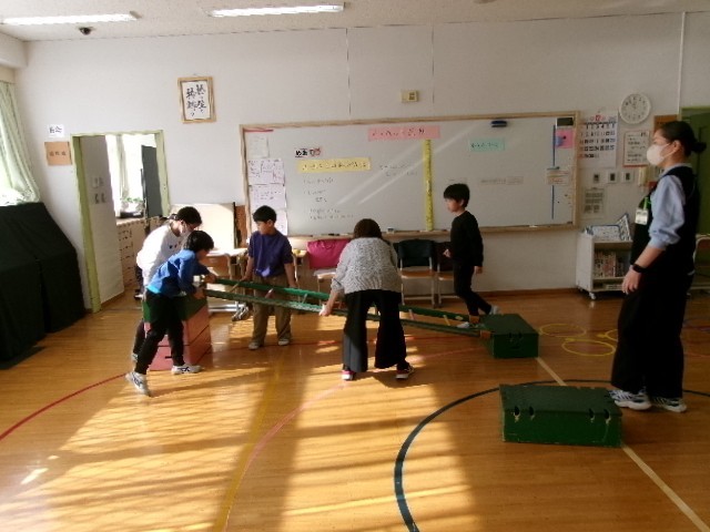 けやき学級の子供たちが自立活動の学習の中で「サーキット運動」に取り組みました。自分たちでコースの作り方を話し合い、協力して準備して、運動に取り組み、楽しみました。