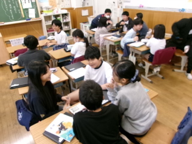 道徳の時間に「ピアノの音が」という教材で、権利と義務について考えました。互いの立場が異なった時にどういう思考をすることがより良い行動に結び付くのかを友達と議論する道徳でした。
