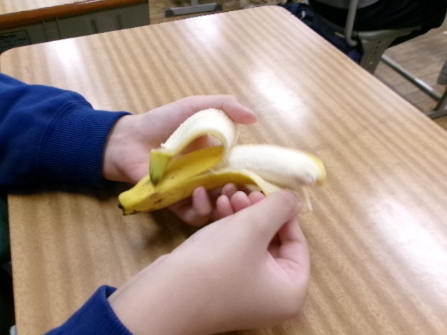 規則正しい生活を身に付けること、朝ご飯の大切さを感じることなどを目的として「おはようバナナ」を実施しました。保健委員会の子供たちが、朝ご飯の大切さをスライドを使って説明もしてくれました。