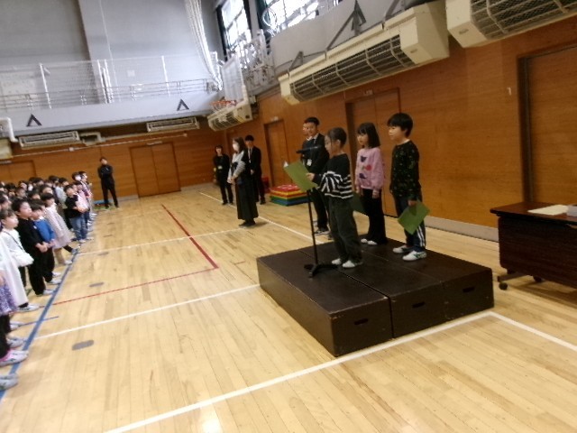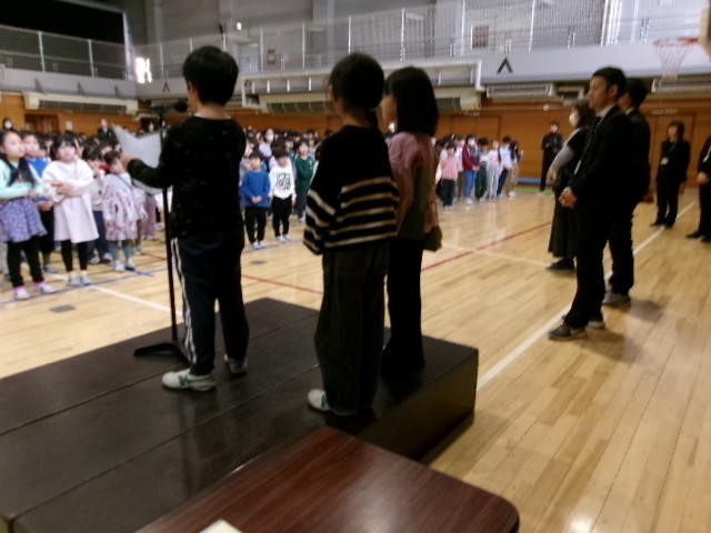 2学期の終業式が行われました。どの子もよく頑張ったと思います。代表で2年生の3人が発表もしてくれました。3学期もみんなに期待しています。