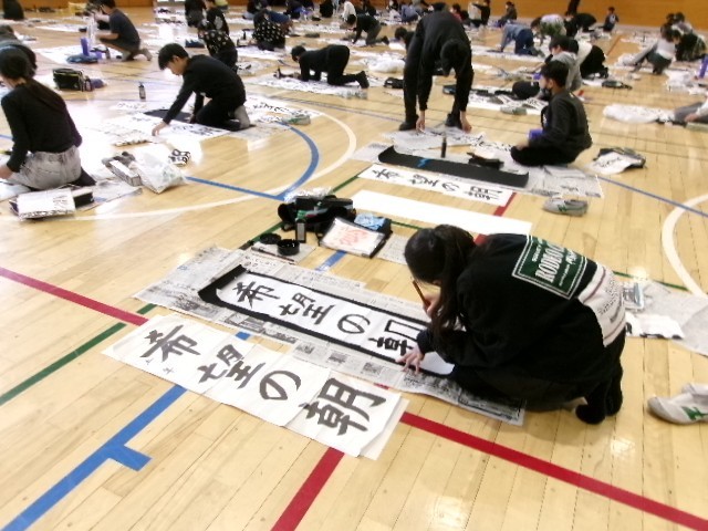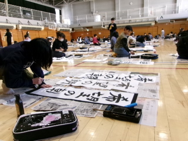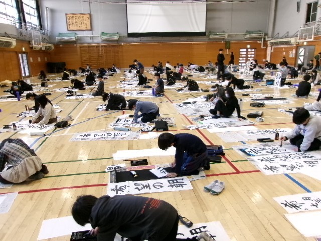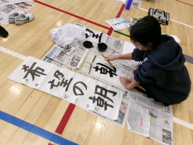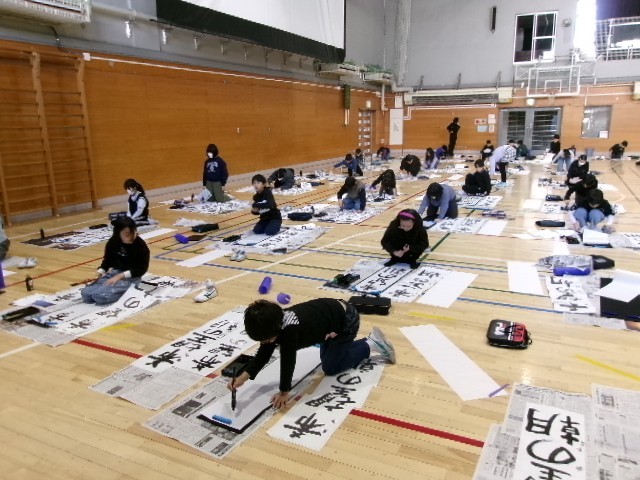 これまでの練習を生かして、5年生が書初めをする席書会に臨みました。体育館で一人一人が書道に向き合う時間はとても良い経験となっています。