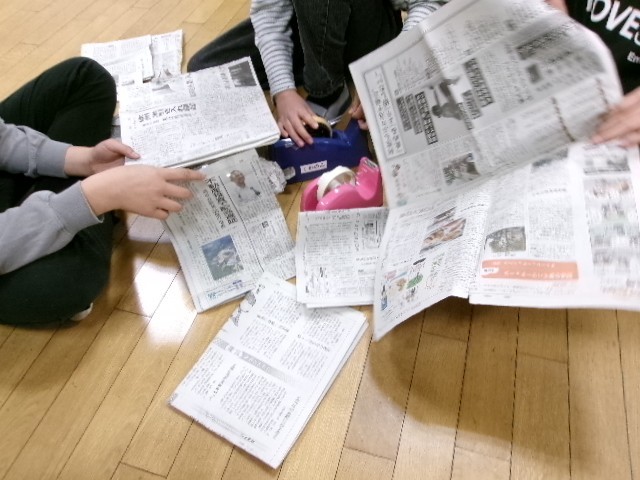くわのみ教室の小集団活動で、友達と協力しながら「新聞タワー」を作る活動です。作り方のアイデアについても意見を出し合い、作り上げる作業も声を掛け合いながら活動しました。コミュニケーションの力を小集団で伸ばしていきます。