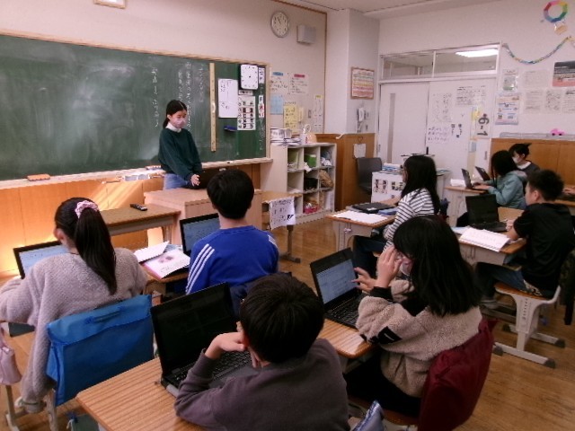国語の教科書教材「考えるとは」で3つの説明的文章を読み比べ、筆者の考えについての自分なりの考えをまとめ、それをクラスで発表しました。6年生では、しっかりとした意見がたくさん聞かれました。