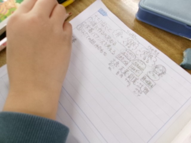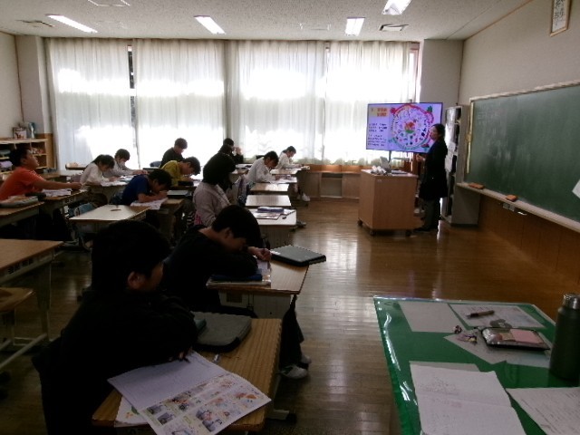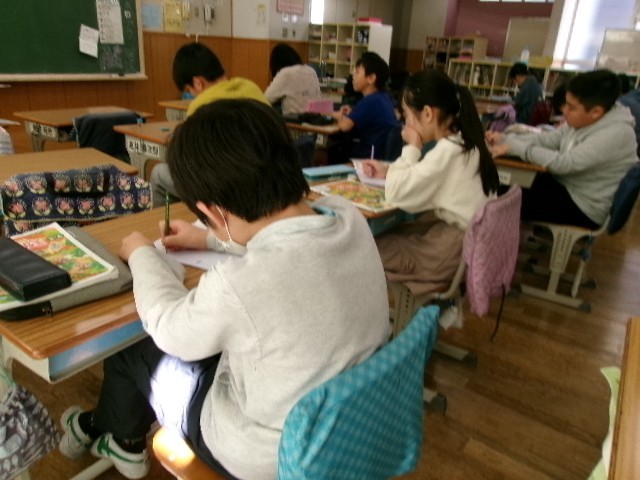 家庭科の授業で献立を立て、実習する計画を立てている6年生は、栄養士の先生から、実際に献立を立てるときのポイントを、給食を例にして教えていただきました。専門的な話はとても参考になりました。