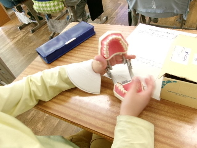 歯科校医の高草木先生をお招きして、歯科講話をしていただきました。模型も使いながら、噛むことの大切さなどをしっかり学ぶことができた4年生です。