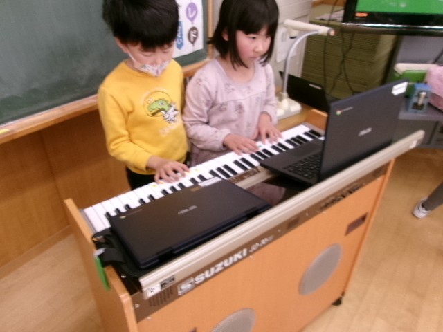 合奏の練習です。「こぐまの2月」という曲を、楽器ごとに練習を進めました。